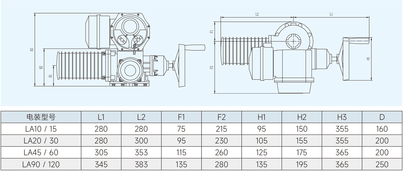 LA系列全智能电动执行器,是本公司在引进美国VALVSYS执行器技术基础上自主创新研发,为满足高端及出口要 求的新一代全智能非侵型产品。采用压铸铝外壳,防护等级高,可满足不同工况环境使用。适用于各类型的阀门,如闸 阀、截止阀、蝶阀、球阀、调节阀等。产品广泛应用于水利、环保、石油、化工、煤矿、电力、冶金、城市排水、污水 处理等行业。