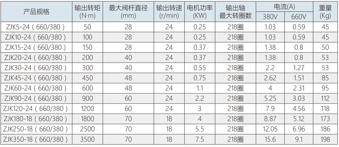 | 法兰连接标准 | 多回转:JB2920、GB12222、ISO5210;部分回转:ISO5211、GB12223 |